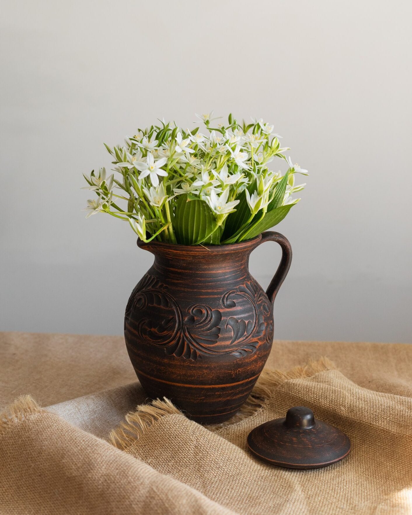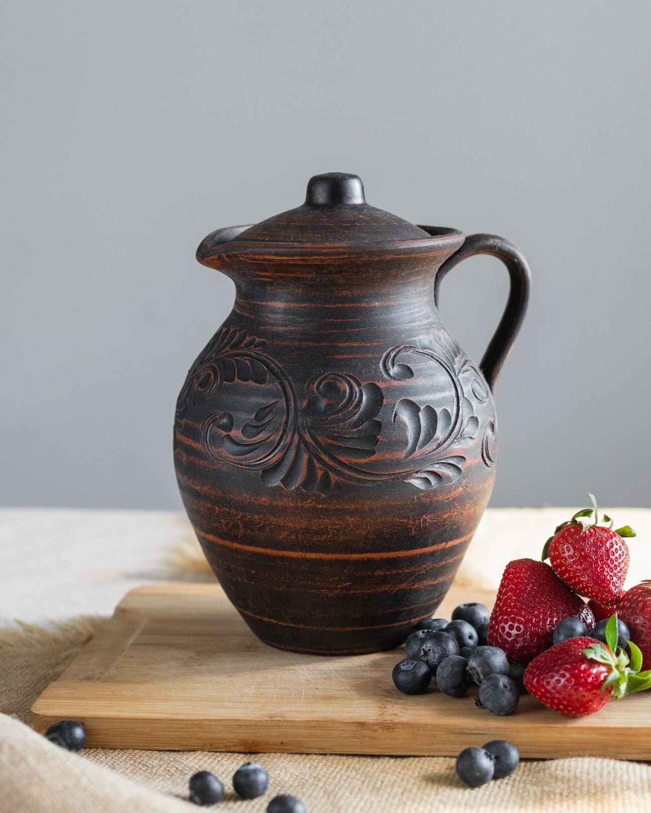 ✅ Глиняний глечик підійде для будь-яких напоїв, зазвичай використовують для молока, узвару або квасу.