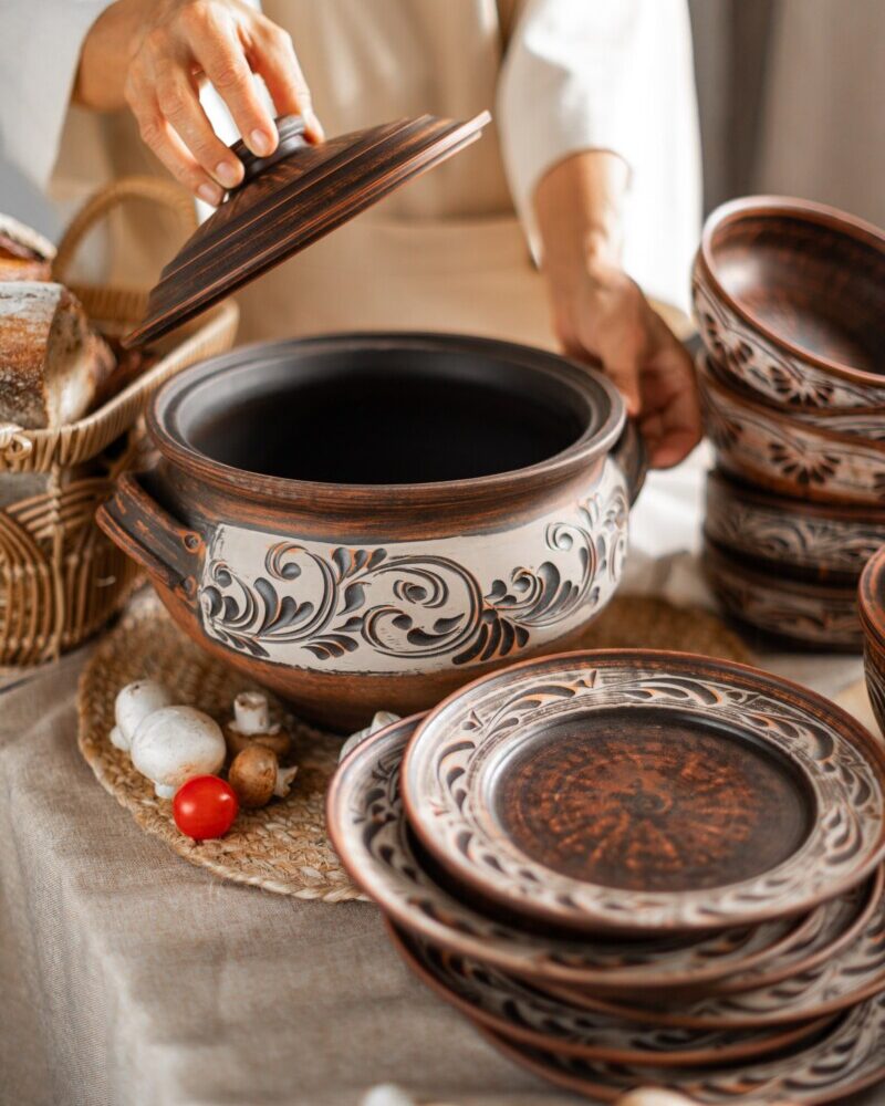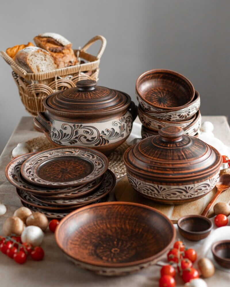 Гончарний посуд без глазурі, виглядатиме на вашій кухні, дуже індивідуально та оригінально.