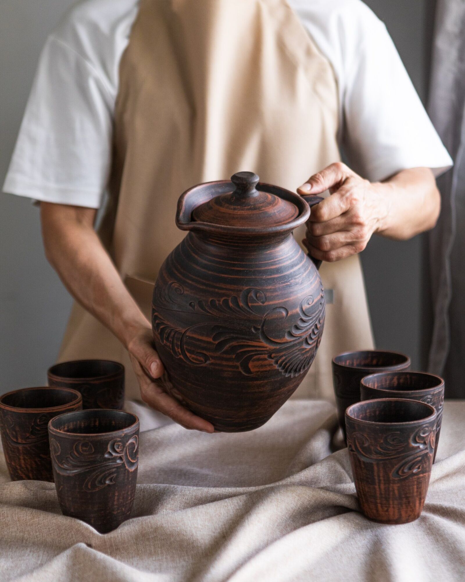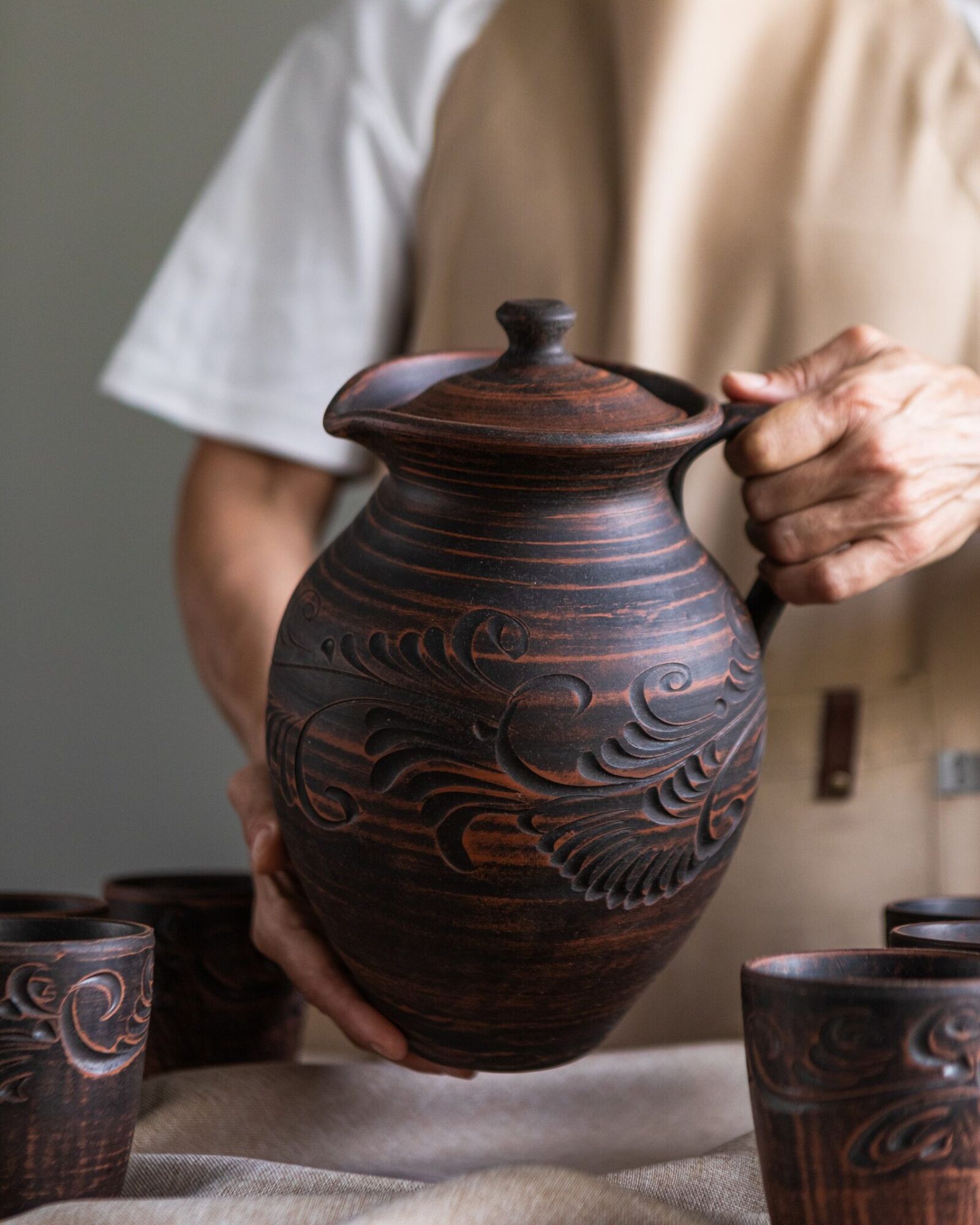 ✅ Глиняний глечик підійде для будь-яких напоїв, зазвичай використовують для молока, узвару або квасу.