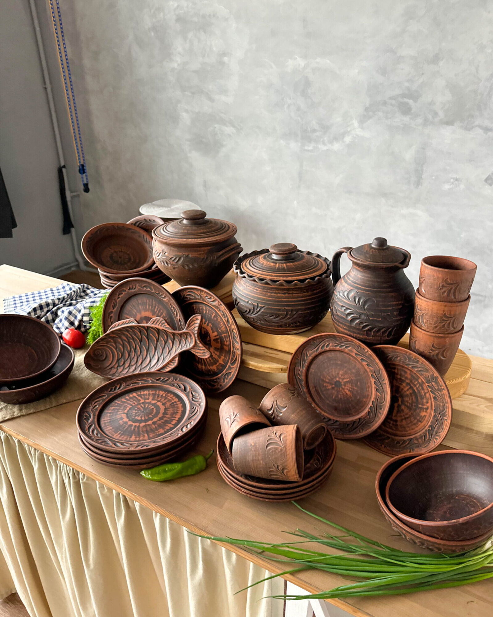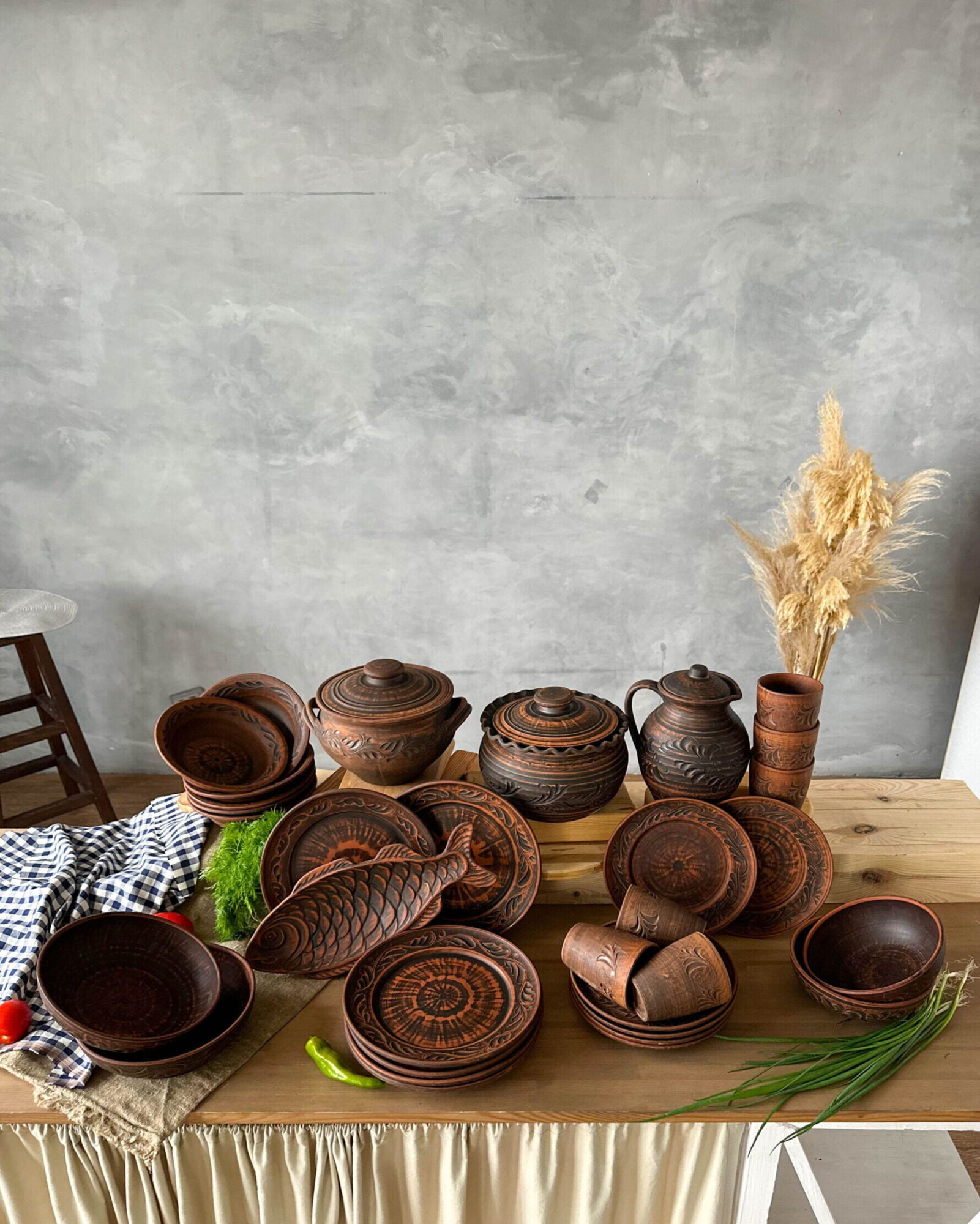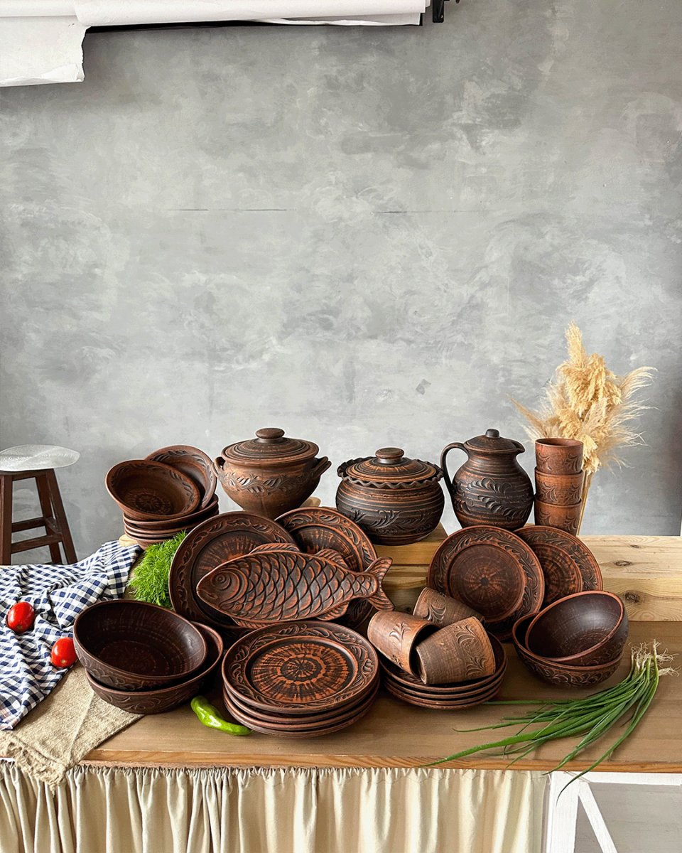 Гончарний посуд без глазурі, виглядатиме на вашій кухні, дуже індивідуально та оригінально.