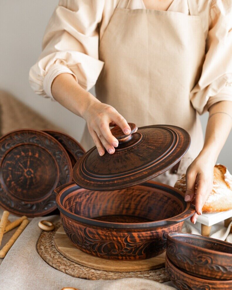 Гончарний посуд без глазурі виглядатиме на вашій кухні індивідуально та оригінально.