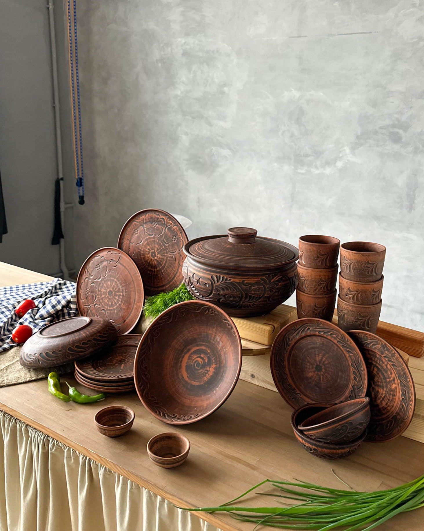 Гончарний посуд без глазурі, виглядатиме на вашій кухні, дуже індивідуально та оригінально.