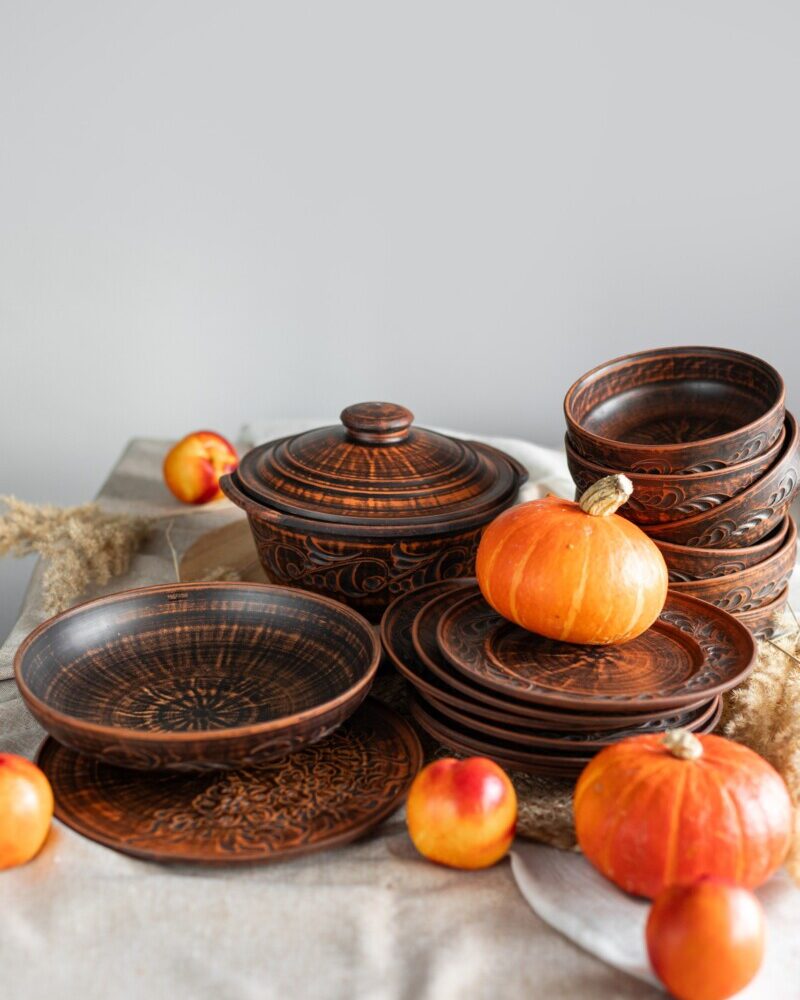 Гончарний посуд без глазурі, виглядатиме на вашій кухні, дуже індивідуально та оригінально.