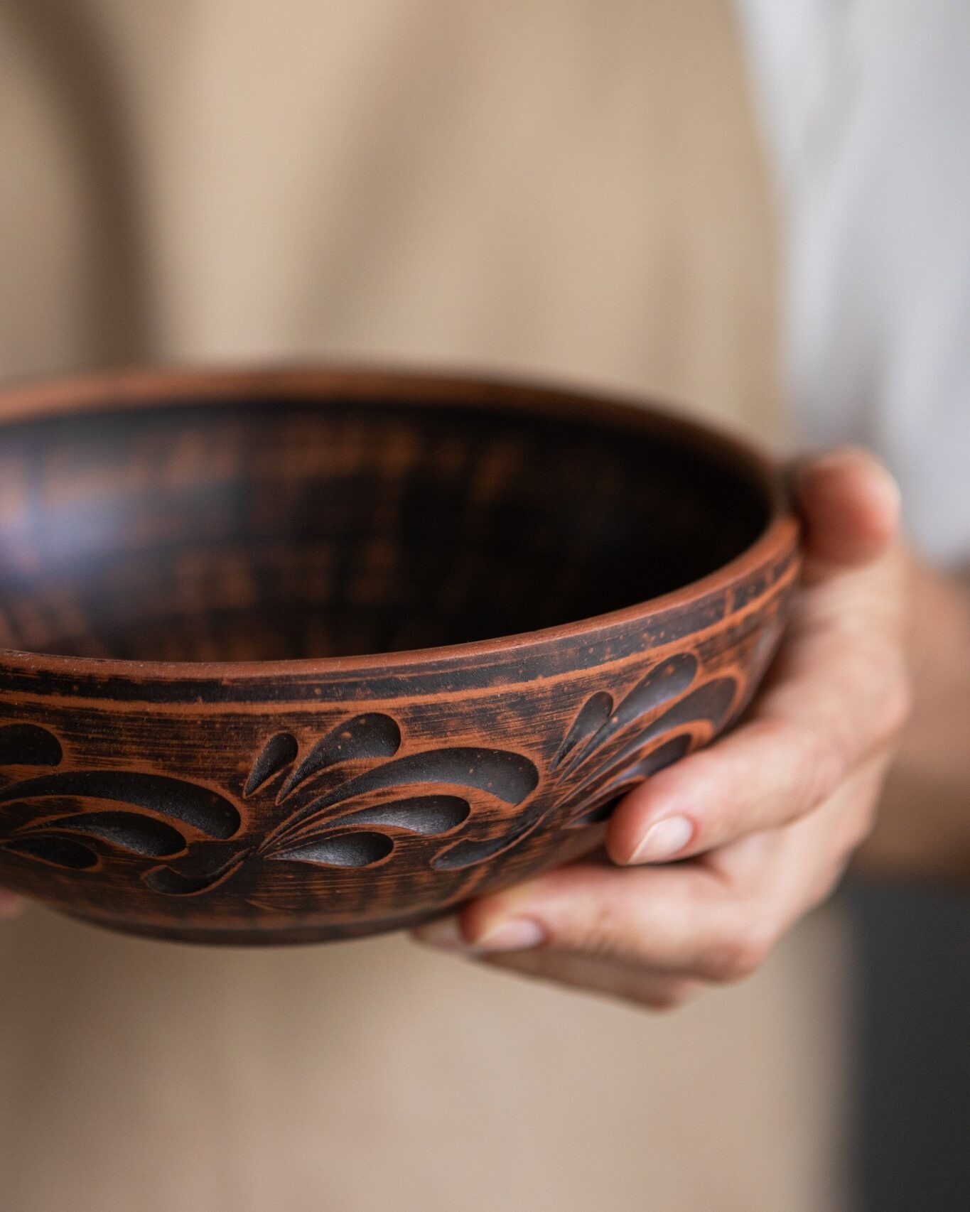 Глиняний посуд має ексклюзивний, шоколадно-коричневий, задимлений відтінок. Добре зберігає тепло та прохолоду, а також свіжість продуктів тривалий час. Страви виходять ароматні та соковиті. При виготовленні цього посуду використовувалися спеціальні технології – натуральна та екологічно чиста сировина. Гончарний посуд без глазурі, виглядатиме на вашій кухні, дуже індивідуально та оригінально 💋