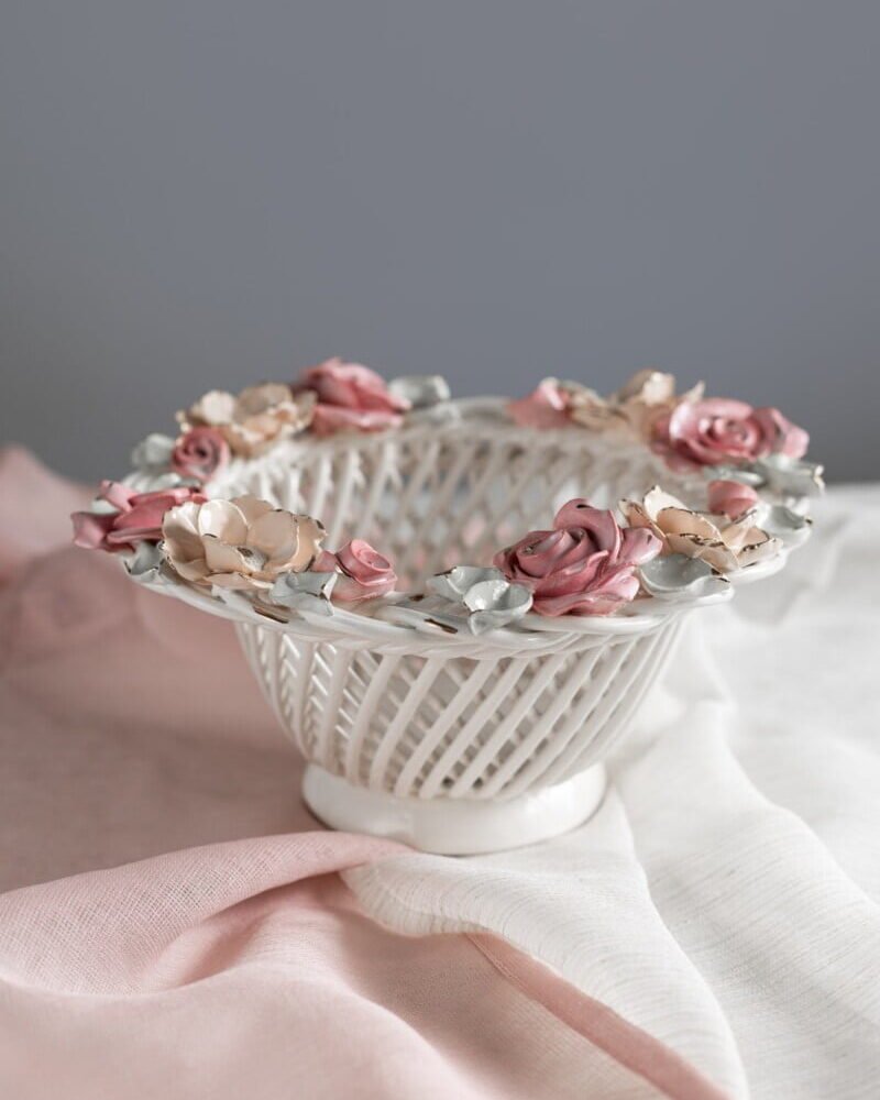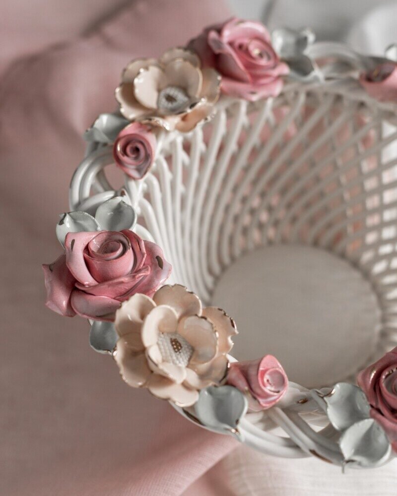 Матеріал: кераміка. М’яка порцеляна з квітковим ліпленням.