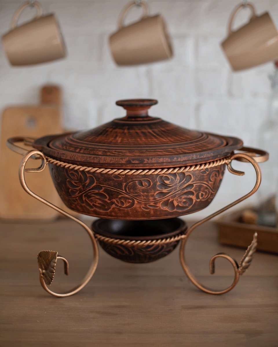 Екологічно чиста червона глина, має високі терморегулюючі властивості. Навіть якщо прибрати джерело нагріву, то посудина з червоної глини ще 1,5-2 години буде теплою. Нагрівається такий посуд поступово і досить довго тримає температуру.