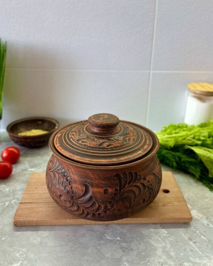 Коли в будинку є глиняний, якісний посуд, він тішить око. Користуватися посудом із глини можна не лише під час приходу гостей, а й у вузькому сімейному колі. Глина добре зберігає температуру вмісту. Термостійка. Не можна використовувати на вогні. Не використовувати у посудомийній машині