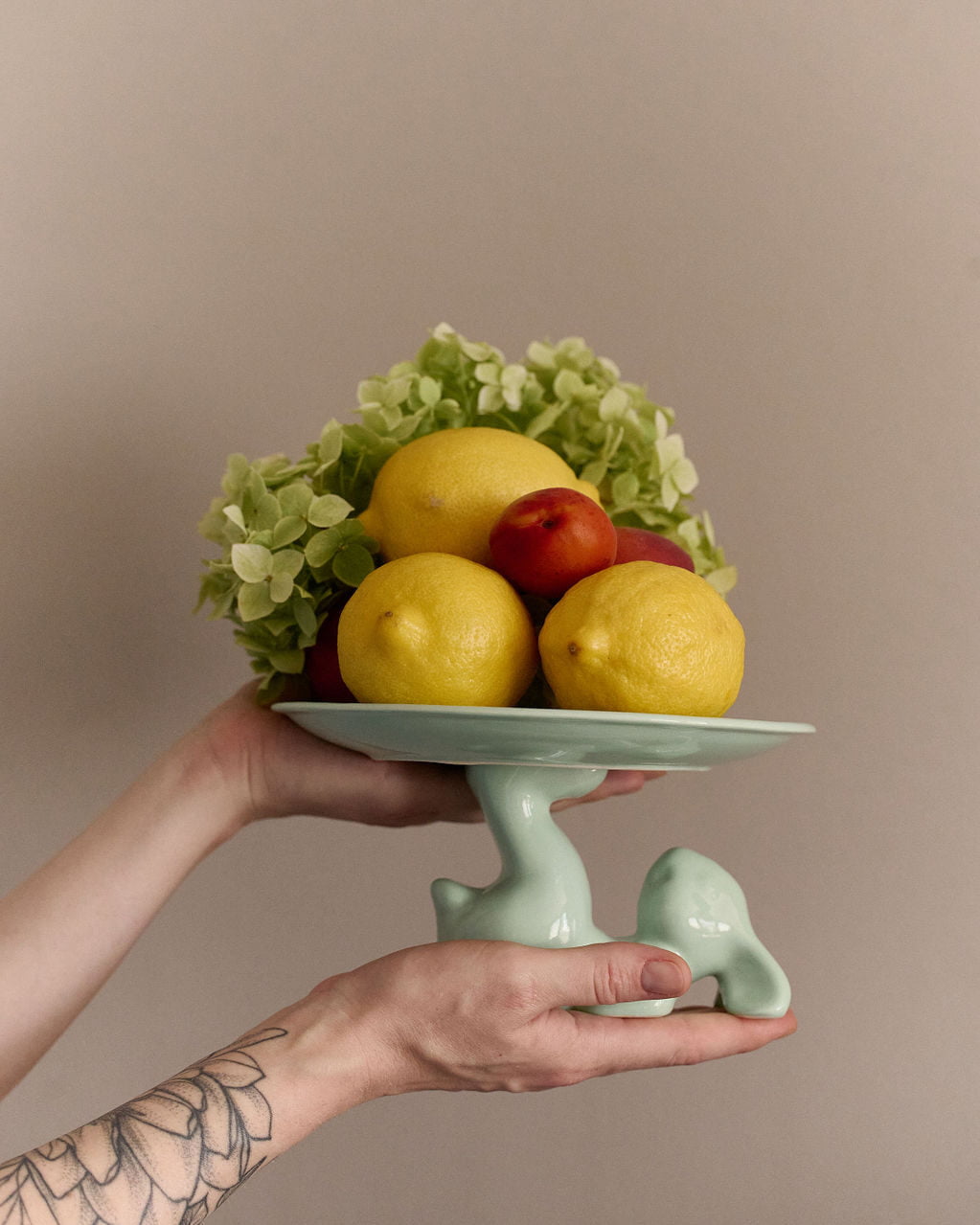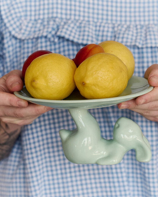 Наш інтернет-магазин пропонує декоративну порцелянову тарілку, яку незвично тримає задніми лапками милий кролик🐰 м’ятного кольору. Порцелянова тарілочка з кроликом висотою 11см і діаметром 19см.